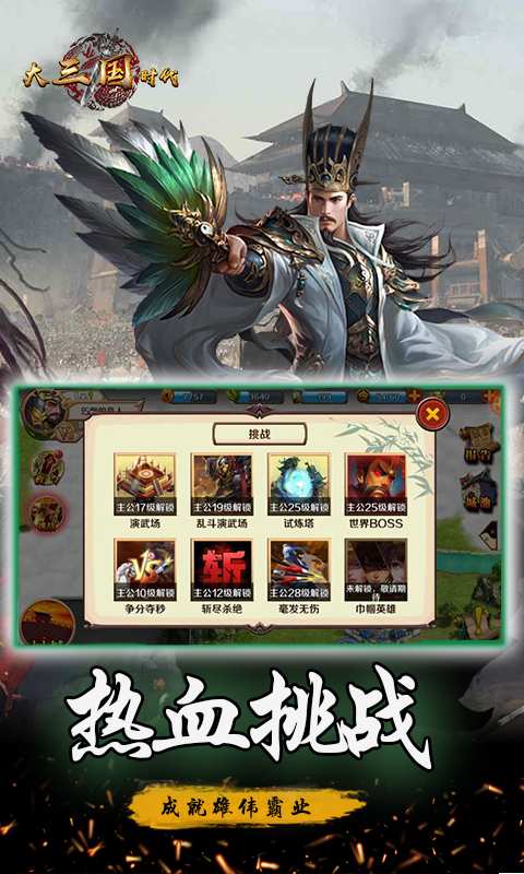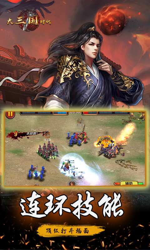全新手游,经典延续!打破传统,首创多人实时组队PVP,你不再是一个人在战斗!赶紧拉上你的战友,一起来《大三国时代》实时竞技场,来一场酣畅淋漓的战斗,体验热血沸腾、奋勇杀敌的快感!