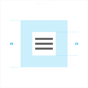 谷歌则推荐触控目标的尺寸至少为48x48dp。多数情况下,这些触控目标应使用至少8dp的空间分隔来确保信息密度的平衡性与可用性。无论屏幕尺寸有多大,一个48x48dp的触控目标需要9mm的物理尺寸。触控目标包括响应用户输入的区域。触控目标的面积往往超过一个元素的可视区域:比如一个图标形状是24x24dp,但是加上周围的间距,共同组成了48x48dp的触控面积。