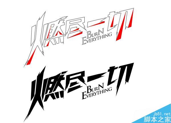 "燃尽一切"是疾风之刃一个版本的字体尝试,联想到疾风之刃是漫画风格的游戏,结合logo的形状和字体风格,做的一种方案。